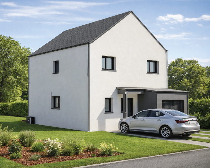 Construction aux normes RE2020, isolation renforcée, performance énergétique durable.
