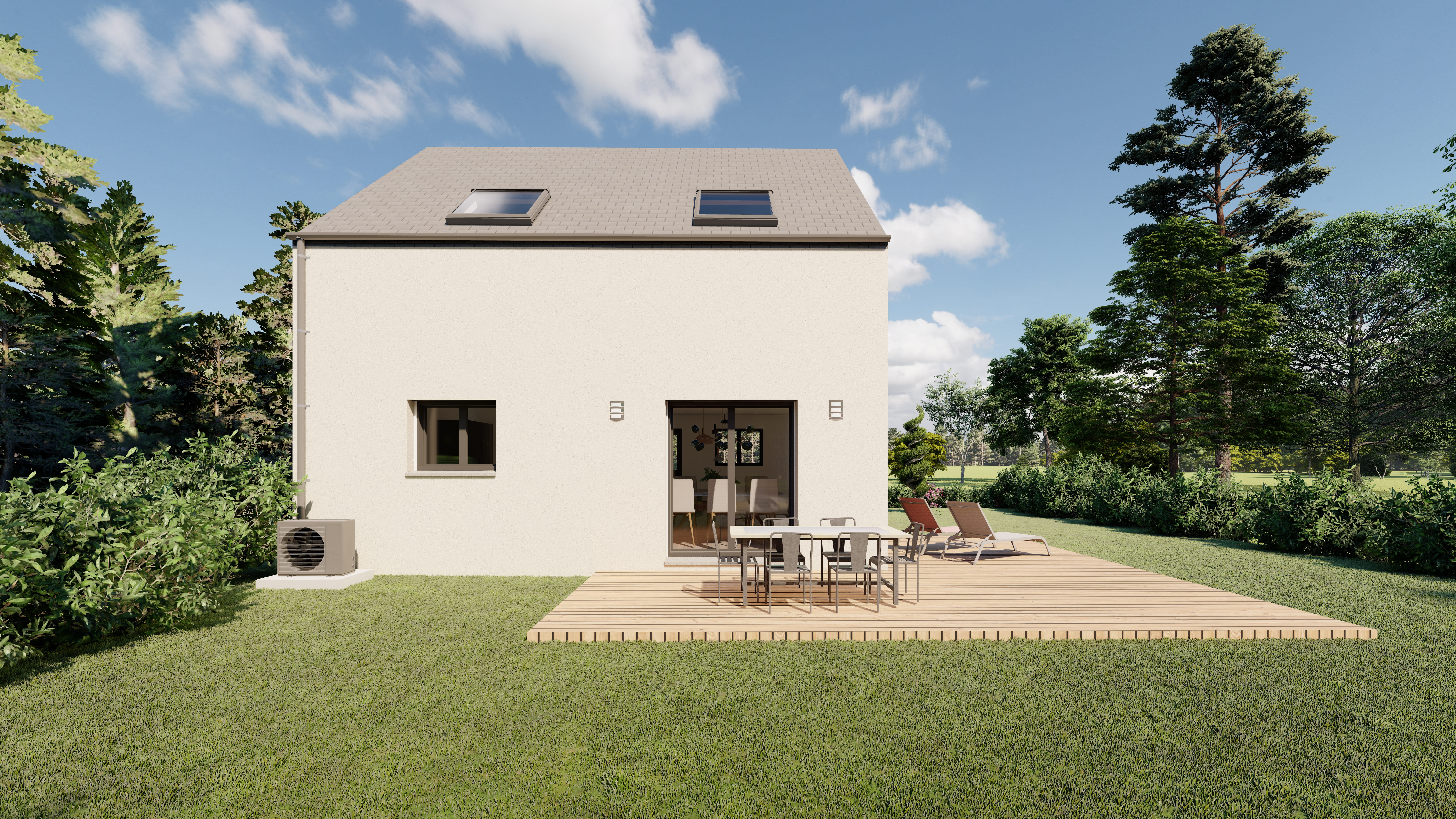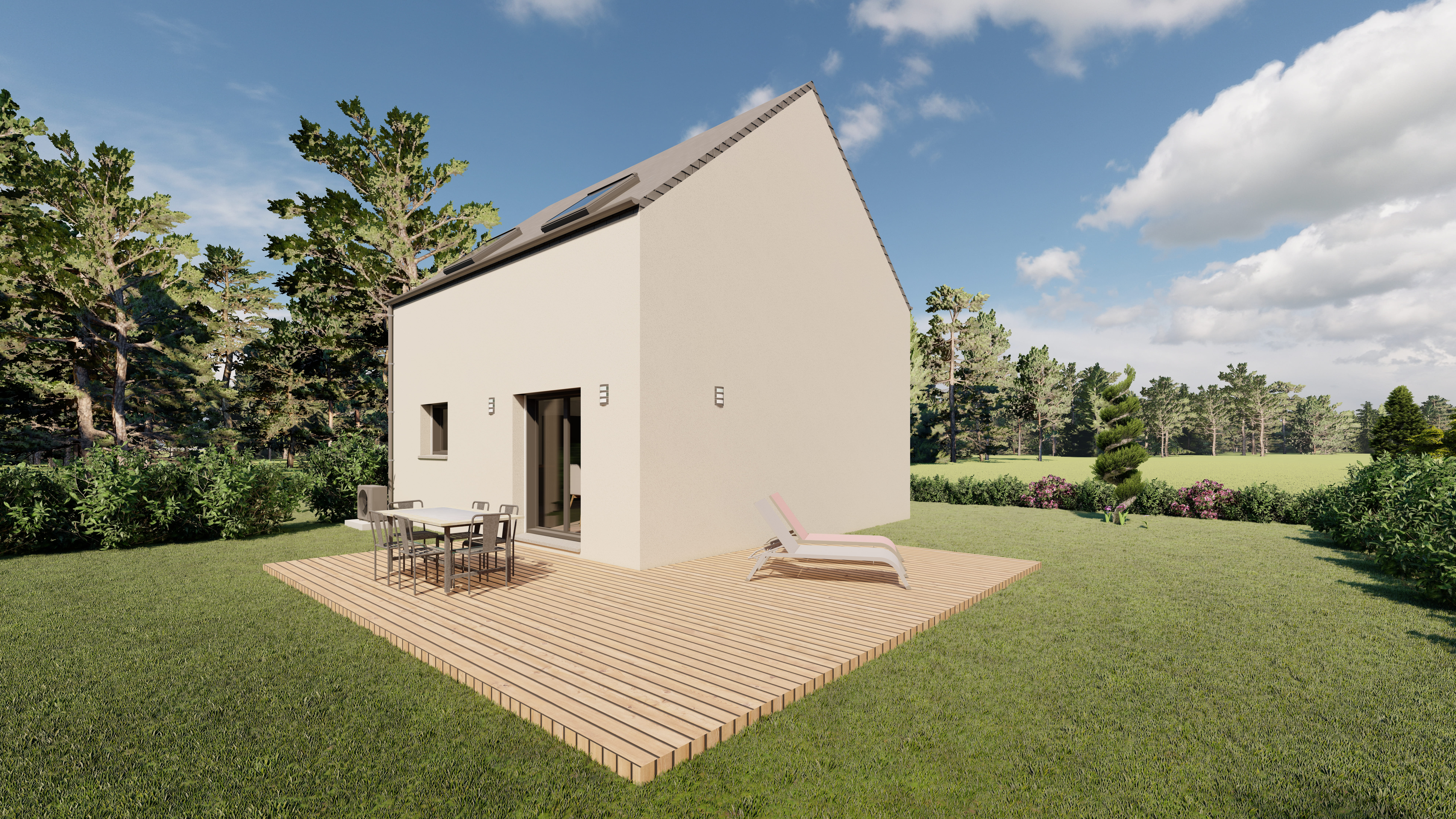 Prix incluant terrain + construction hors assurance DO, frais annexes et frais de notaire.