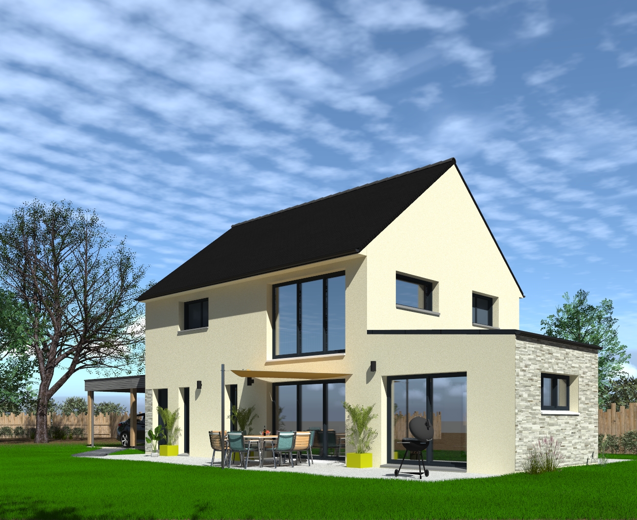Prix incluant terrain + construction hors assurance DO, frais annexes et frais de notaire.