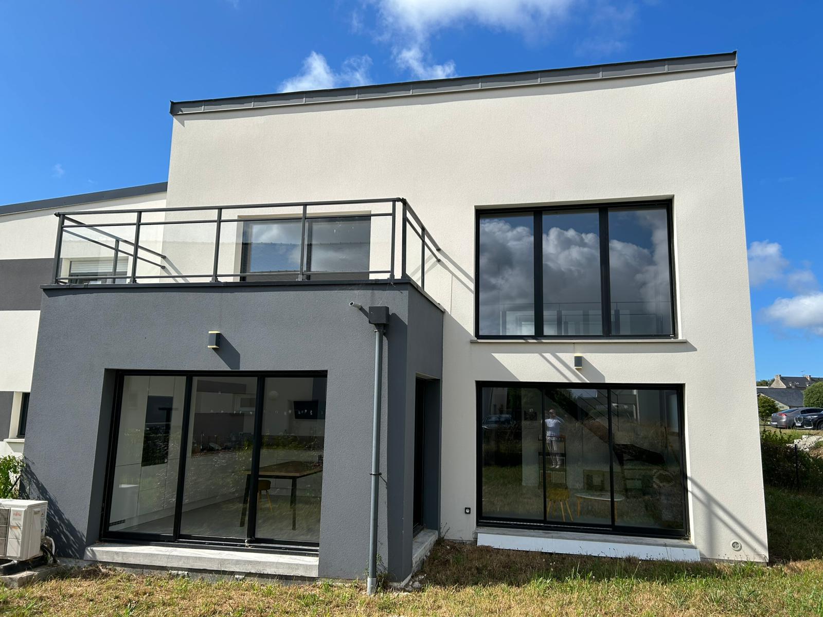 • Menuiseries aluminium noir, volets roulants motorisés