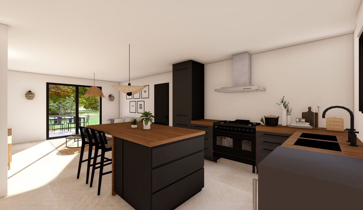L'espace de vie est lumineux & agréable, il dispose d'une cuisine avec ilot central ouverte sur le salon.