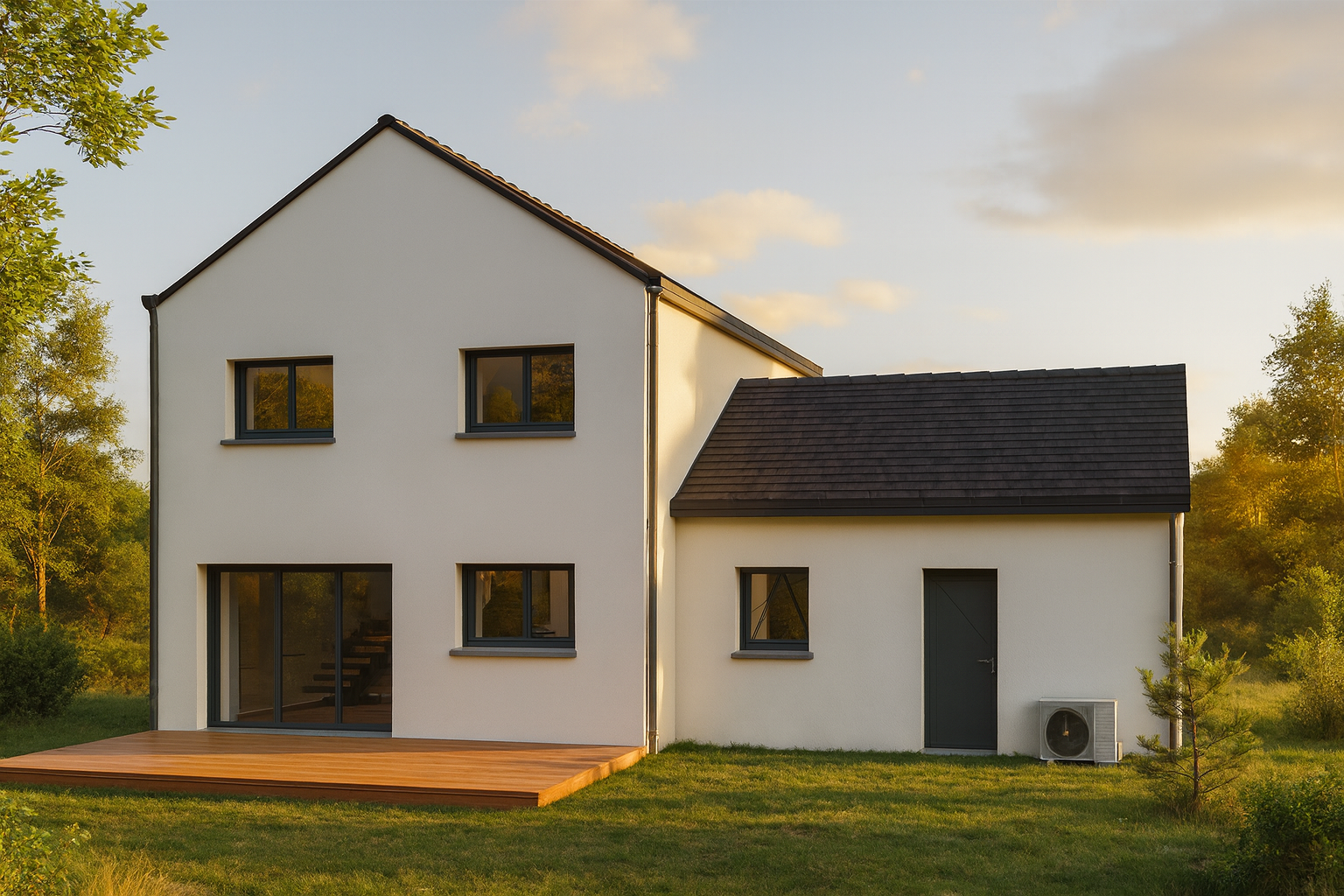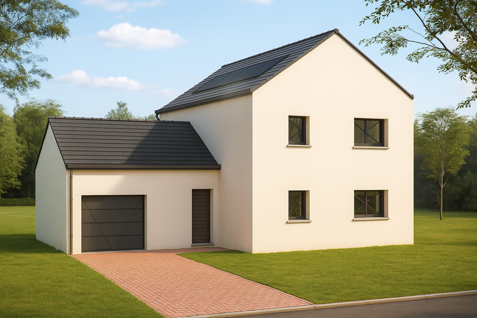 Belle maison de 106m² proposant une entrée avec placard dissociée de la pièce de vie avec cuisine ouverte de 40m². Une chambre parentale avec son dressing et sa salle d'eau est proposée aussi au RDC.