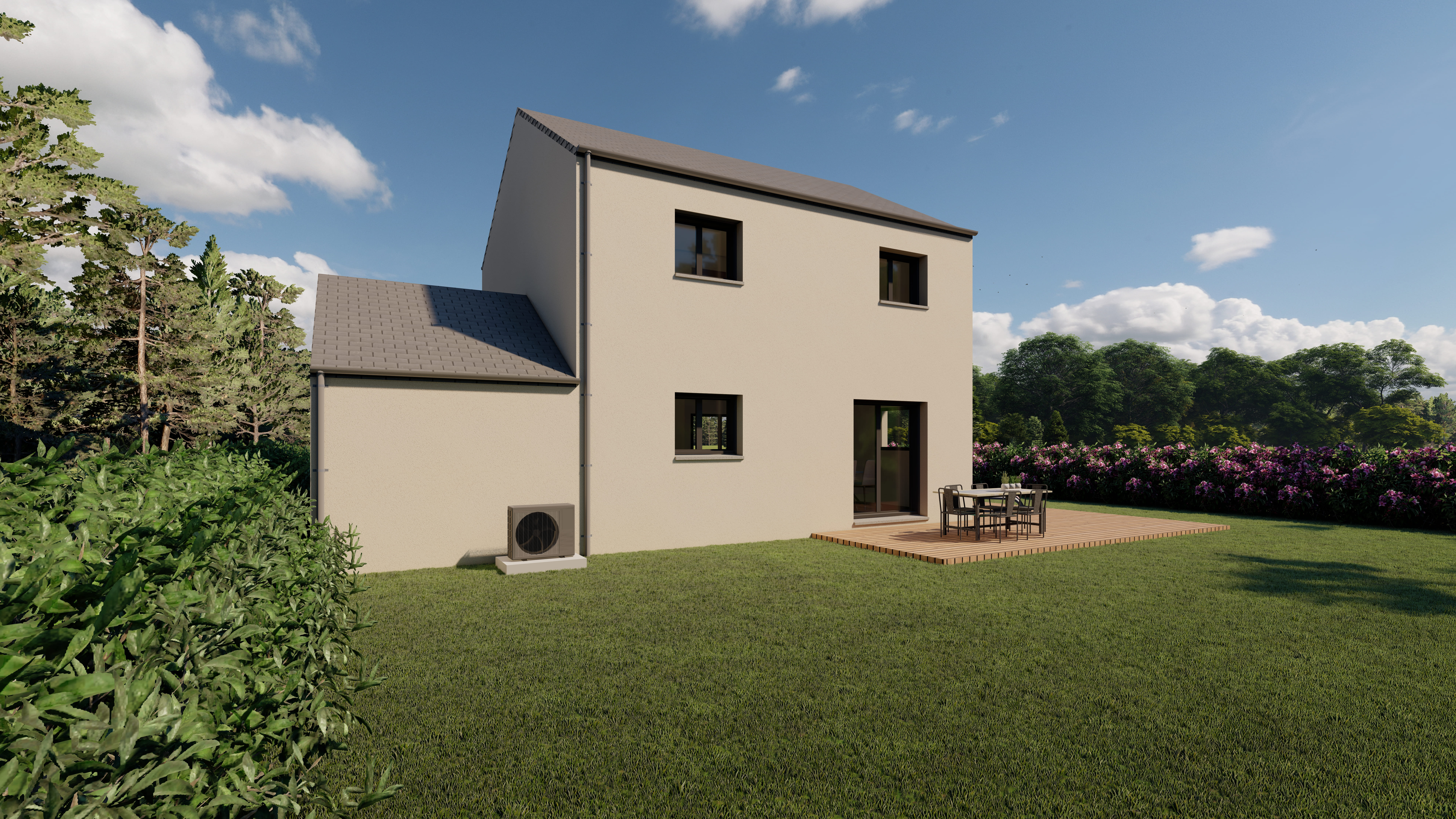 Prix incluant terrain + construction hors assurance DO, frais annexes et frais de notaire.