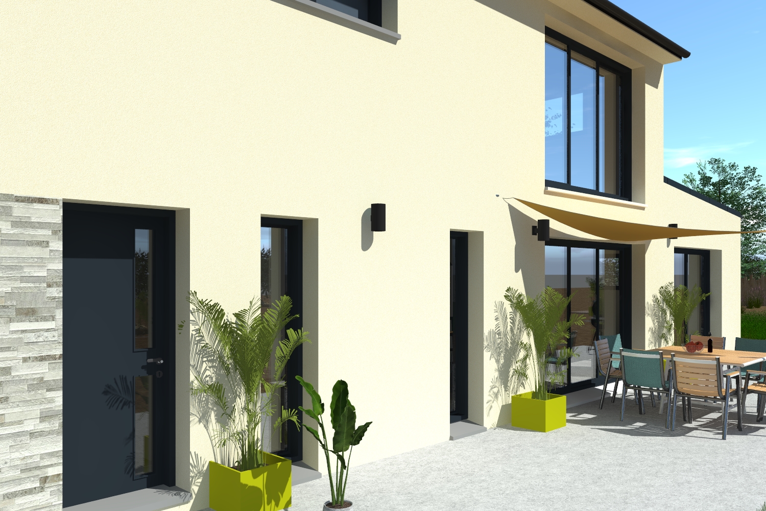 Prix incluant terrain + construction hors assurance DO, frais annexes et frais de notaire.