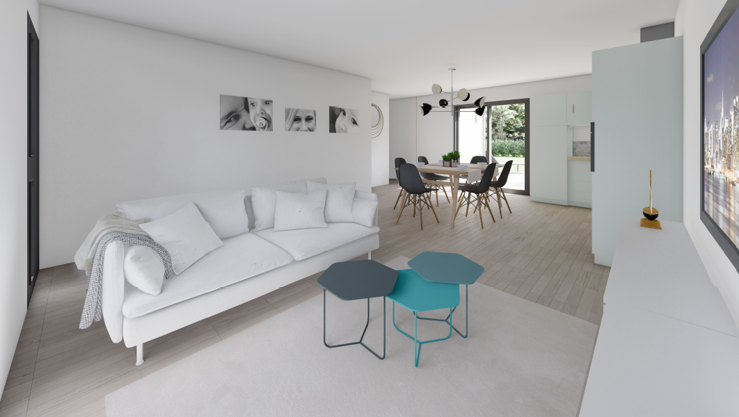 Cette maison est composé d'une pièce de vie traversante avec cuisine ouverte, donnant sur le jardin.