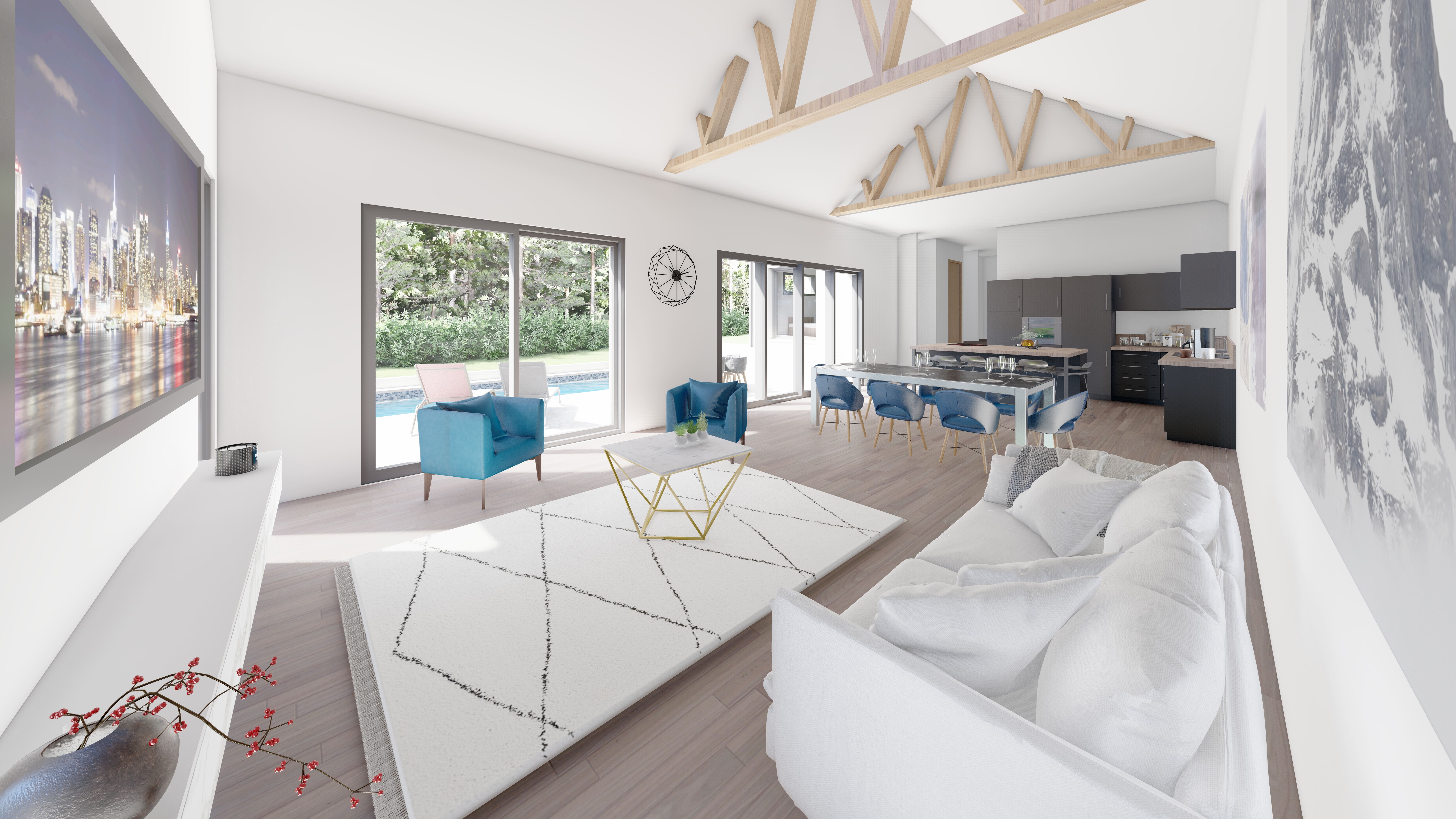 La pièce de vie de plus de 53m², dispose d'une belle hauteur sous plafond grâce à son plafond cathédrale et ses grandes portes-fenêtres en double expositions apportent beaucoup de lumière naturelle.
